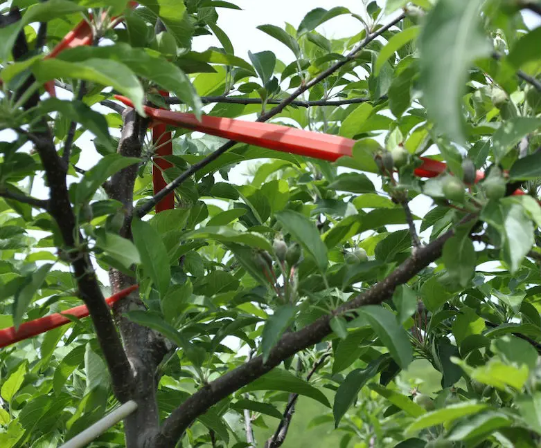 Improve your tree’s structural form. Spreading limbs opens up a tree’s canopy to allow for more light and air circulation. This promotes tree health and increases fruit size and quality. Gently wedge these lightweight, sturdy plastic limb spreaders between a tree’s young, pliable branches and its trunk to encourage wider, stronger branch angles (about 45 degrees from vertical). A great investment — reuse year after year! We suggest using 6″ and 9″ spreaders for stone fruit trees like cherries, peaches, and plums and 9″ and 12″ spreaders for fruit trees like apples and pears.