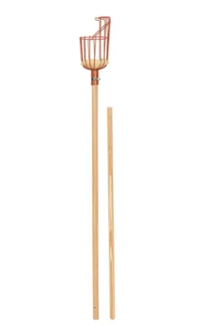 Harvest fruit with ease – no ladder needed! Lightweight, vinyl-coated wire basket is designed with a hooked side that “picks” fruit and a foam pad that catches it without bruising. Extend your reach up to 8 feet with two 4-foot wooden poles that can connect to make one 8-foot pole as needed. Simply attach poles using the provided brackets. Poles and hardware included. Basket measures 10″H x 5.5”D. Product color may vary.